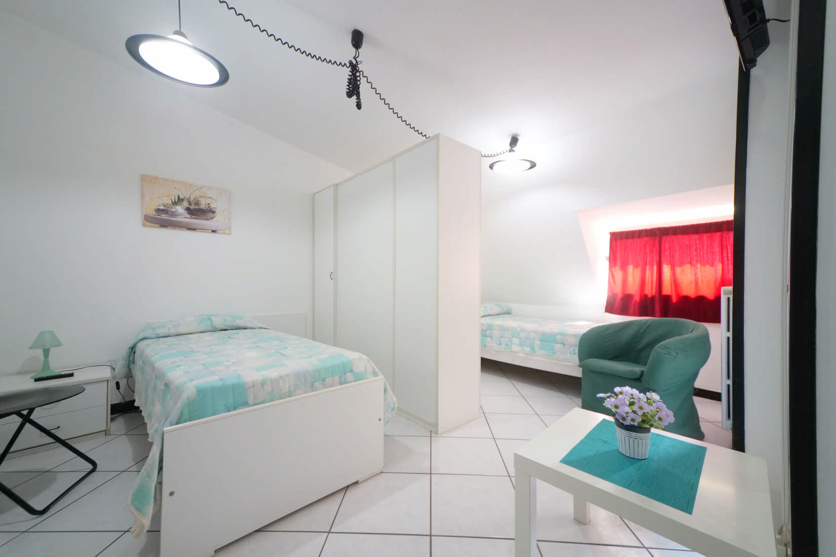 Zona notte: n° 2 letti singoli con comodini, armadio, tv.